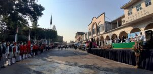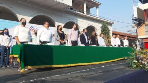 Organizado por el Centro de Bachillerato Tecnológico Agropecuario (CBTA) número 49, el evento se llevó a cabo en punto de las 9:00 horas, con la asistencia de la titular del DIF Municipal, Angélica Patricia Álvarez Pizano, así como regidores y funcionarios municipales, quienes se dieron cita en los estrados de la presidencia municipal ante contingentes de escuelas de nivel básico, medio superior y superior.